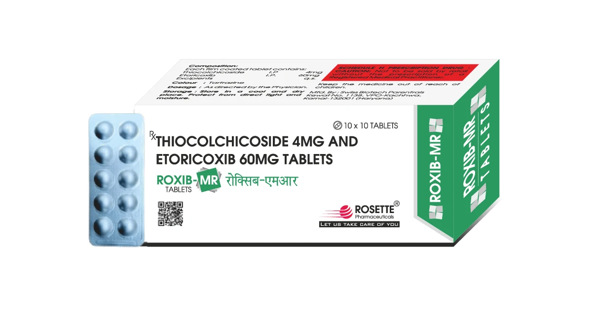 Tablets REFPO-CVCefpodoxime Proxetil 200mg + Potassium Clavulanate 125mg REFPO-200 DT Cefpodoxime Proxetil 200mg Dispersible Tablets ROSCLAV-625 TABAmoxycillin 500mg + Clavulanate 125mg ROSCLAV-625 IB Amoxycillin 500mg +Clavulanate 25mg with LB CEFUROX-500Cefuroxime Axetil 500mg ROZET-CLCefixime 200mg, Azithromycin 250mg ROZET-500Azithromycin 500mg ROZET-500 LB Azithromycin 500mg with LB Rozet-250 LB TabAzithromycin 250mg with LB Rotfix-200Cefixime 200mg Leoflo TabLevofloxacin 500mg Relo-200Ofloxacin 200mg Relo-OROfloxacin 200mg + Ornidazole 500mg Relo-CFAzithromycin 500mg with LB R-Flox-TZNorfloxacin 400mg + Tinidazole 600mg RoselyteWHO Approved ORS Fomula I-Worm-12Ivermectin (12mg) Remic-4Ondansetron Orally Disintegrating Tablets 4mg Mefros SpasMefenamic 250 mg + Dicyclomine 10mg Sintop-40Pantoprazole 40mg Sintop-DPantoprazole 40mg + Domperidone 10mg Brintop TabRabeprazole 20mg Brintop-D TabRabeprazole 20mg + Domperidone 10mg Ropyro-500Paracetamol 500mg Ropyro-650Paracetamol 650mg RimiNimesulide 100mg + Paracetamol 325mg Rimi GoldNimesulide 100mg +Paracetamol 325mg Rusen-PParacetamol 325mg & Diclofenac 50mg Rufen-SP TabDiclofenac 50mg + Paracetamol 325mg + Serratiopeptidase... Rufen-MR TabDiclofenac 50mg + Paracetamol 325mg... Acedol-SR TabAceclofenac 200mg Acedol Plus TabAceclofenac 100mg + Paracetamol 325mg Acedol-SP (Blister)Aceclofenac 100mg + Paracetamol 325mg + Serratiopeptidase 15mg Acedol SP (Alu)Aceclofenac 100mg + Paracetamol 325mg + Serratiopeptidase... Acedol SpasAceclofenac 100mg + Drotaverine HCL 80 mg Acedol-MR TabAceclofenac 100mg + Paracetamol 325mg + Chlorzoxazone 250mg Roxib-120Etoricoxib 120mg Roxib-90Etoricoxib 90mg Roxib-MREtoricoxib 60+ Thiocholchicoside 4 mg Roxib-PEtoricoxib 60mg +Paracetamol 325mg LezetLevocetrizine 5mg Lezet-MT TabLevocetrizine 5mg + Montekulast 10mg Lezet-MT Kid TabLevocetrizine 2.5mg + Montekulast 5mg Montaid-FXFexofenadine 120mg + Montelukast 10mg Montaid-BLMontelukast 10mg + Bilastine 20mg RezetParacetamol 500mg + Phenylephrine Hydrochloride 5mg... Rezet-PParacetamol 325mg+ Phenylephrine Hydrochloride 5mg... Ivect-D6 Tab (Glucosteroid)Deflazacort 6mg Tablet Rolam-NPPregabalin 75mg +Methylcobalamin 1500mcg... Ride-M1Metformin 500mg + Glimepiride 1mg Ride-M2Metformin 500mg + Glimepiride 2mg Ride-MV 2.3Metformin 500mg glimeperide 2mg... Atofin TabAtorvastatin Calcium 10mg + Fenofibrate 160mg Telmiros-40 TabTelmisartan 40mg Telmiros-AM TabTelmisartan 40mg + Amlodipine Besylate 5mg Telmiros-HT TabTelmisartan 40mg + Hydrochlorothiazide 12.5mg Zincofit-GLMultivitamin , Multimineral with grape seed ... Rozcold-AAceclofenac100mg + Paracetamol325mg... Rozcold-NNimesulide100mg + Paracetamol325mg... RozkufDextromethorphan Hydrobromide... CAPSULES Racmox-500Amoxycillin 500mg Capsules Racmox-LBAmoxycillin 250 Mg +Cloxacillin 250 Mg... Doxyaide-LBDoxycycline Hyclate 100mg and Lactic Acid Bacillus Sintop-DSR CapPantoprazole 40mg + Domperidone 30mg Brintop-DSR CapRabeprazole 20mg + Domperidone 30mg Brintop-LSR CapRabeprazole 20mg + Levosulpiride 75mg Brintop-AceRabeprazole 20mg + Aceclofenac 200mg Rolam-Plus CapVitamin B12 2.5mcg + Alpha Lipoic Acid 100mg... Rolam-Plus SoftgelMethylcobalamin 1500mcg Alpha Lipoic Acid 100mg... Zefol CapCarbonyl Iron 100mg + Vit. B12 B15mg + Vit. C 75mg... DRY SYRUP Refpo-CV Suspension (Pet Bottle)Cefpodoxime Proxetil 50mg + Potassium Clavulanate... Refpo-50 D/S (Pet Bottle)Cefpodoxime Proxetil 50mg... Refpo-100 D/S (Pet Bottle)Cefpodoxime Proxetil 100mg... Rosclav D/SAmoxycillin 200mg + Clavulanic Acid 28.5mg Rosclav D/S (Pet Bottle) with waterAmoxycillin 200mg + Clavulanic Acid 28.5mg With Sterile Water Rosclav -457 (DDS) (Pet Bottle) with waterAmoxicillin 400mg +potassium clavulanate 57mg... Rotfix-100 Dry Syrup (Pet Bottle)Cefixime 100mg (With Sterile Water for Reconstitution) Rotfix D/S (Pet Bottle)Cefixime 50mg (Without Water) Relo CFCefixime 50mg + Ofloxacin 50mg... DROPS AND SUSPESNION ColicKind Drops 15mlSimethicone 40mg + Dill Oil 0.005ml + Fennel Oil 0.0007ml Ropyro-100 DropsAcetaminophen 100 mg Ropyro Cold DropsParacetamol 125mg + Phenylephrine HCL 5mg+ CPM 2mg Prolac Aqua suspBacillus Clausii Spores 2 Billon Relo-OR SuspensionOfloxacin 50mg + Metrornidazole 120mg... Ropyro-250 suspParacetamol 250mg Mefros-P (DS)Paracetamol 250mg + Mefenamic Acid 100mg Ivect-D6 Sus (Glucosteroid)Deflazacort 6mg Syrup Lezet-MT SuspensionLevocetrizine 2.5mg + Montekulast 4mg Ropyro-Cold SuspensionParacetamol 250mg + Phenylephrine HCL 5mg+ CPM 2mg Profit DropsVitamin A Palmitate2500+Vitamin D3 400... COUGH SYRUP Rozkuf (Sugar Free) (with Carton)Dextromethorphan HBR 10mg + Phenylephrine HCI 5mg... Roztrox (Sugar Free) (with Carton)Terbutaline Sulphate 1.25mg + Guaiphenesin 50mg... Roztrox-AM (Sugar Free) (with Carton)Terbutaline Sulphate 1.25mg + Guaiphenesin 50mg... Roztrox-LS (Sugar Free) (with Carton)Levosalbutamol 1mg + Guaiphenesin 50mg... Roztrox LS JuniorLevosalbutamol 0.5mg + Guaiphenesin 50mg... ENERGY DRINK K-Ross OrangeDextrose 80gm + Sucrose 15mg + Zinc 60mg... K-Ross LemonDextrose 80gm + Sucrose 15mg + Zinc 60mg... SYRUP SufretSucralfate 1000mg Sufret-OSucralfate 1000mg + Oxetacaine 20mg Medilac Syrup (100ml)Lactulose 10mg Zefol SyrupFerric Ammonium Citrate 250mg + L-Lysine HCI 25mg... Profit SyrupMultivitamin + Multimineral syrup Cyproz SyrupTricholine Citrate 275mg + Cyproheptadine HCI 2mg... Oxyden SyrupLycopene 2000mcg With MultiVitamin... Becly Syrup DrugVitamin B1, B6, B12 + D- Panthenol... Rotocal Oral SuspensionCalcium Carbonate Vitamin D3... Zest-SF SuspensionCarbohydrates 2.5gm + Sodium Feredetate 231mg... Livogain SyrupSilymarin 70 mg, Tricholine Citrate 75mg.. R-Gem SyrupFungal Diastase + Papain + Cinnamon Oil + Caraway Oil... OINTMENT MiclozetClobetasol Propionate 0.05% w/w, Gentamycin 0.10% w/v... Povizet-AMPovidone Iodine 5%, Metronidazole 1% and Aloe Vera 1.5% Soreaid GelCholine Salicylate 8.7% w/w+ Benzalkonium Chloride 0.01% w/w... Rusen-Gel OintmentDiclofenac Diethylamine 1.16% w/w + Linseed Oil 3%...